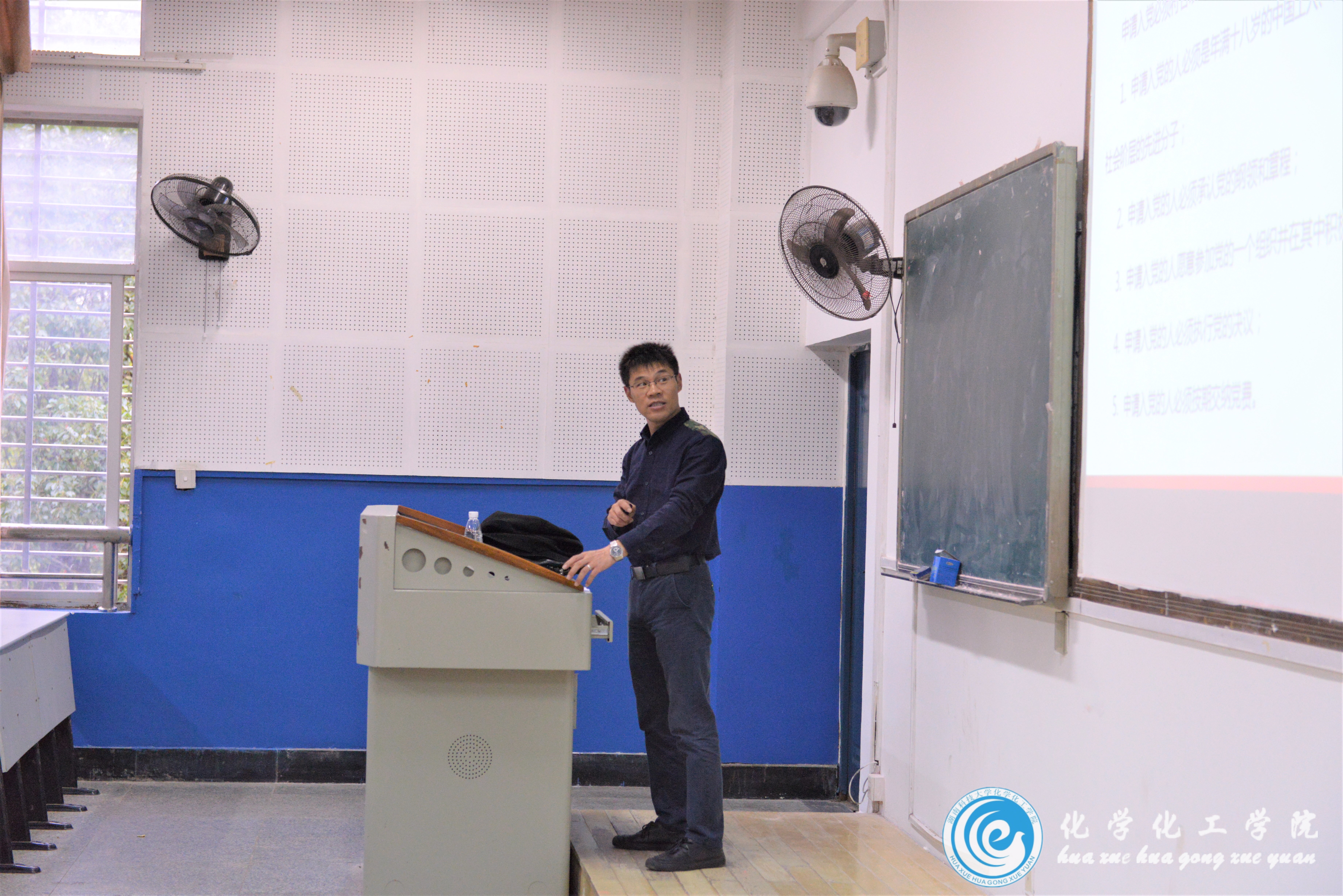 “我们是中间休息还是不休息?我们是现在开始还是打铃之后开始?”吴成义老师和蔼可亲的言行举止立刻拉进了与同学们的距离。吴老师于4点开始了以“厘清入党条件,强化党员意识”为题的党课。吴老师从《党章》讲起,从而引出加入中国共产党必须满足的五个条件,并简要厄明介绍了想要成为一名中国共产党员,同学们需要在学习、工作、生活等方面做出哪些努力。随后,吴老师详细讲解了入党的程序,让同学们对入党过程有一个更加清楚的了解。最后,吴老师发出号召,希望大家积极发挥自己的主观能动性,早日加入中国共产党。